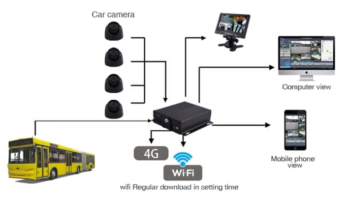 4 Channels 1080P SD Card Mobile DVR 3G 4G WIFI For School Bus